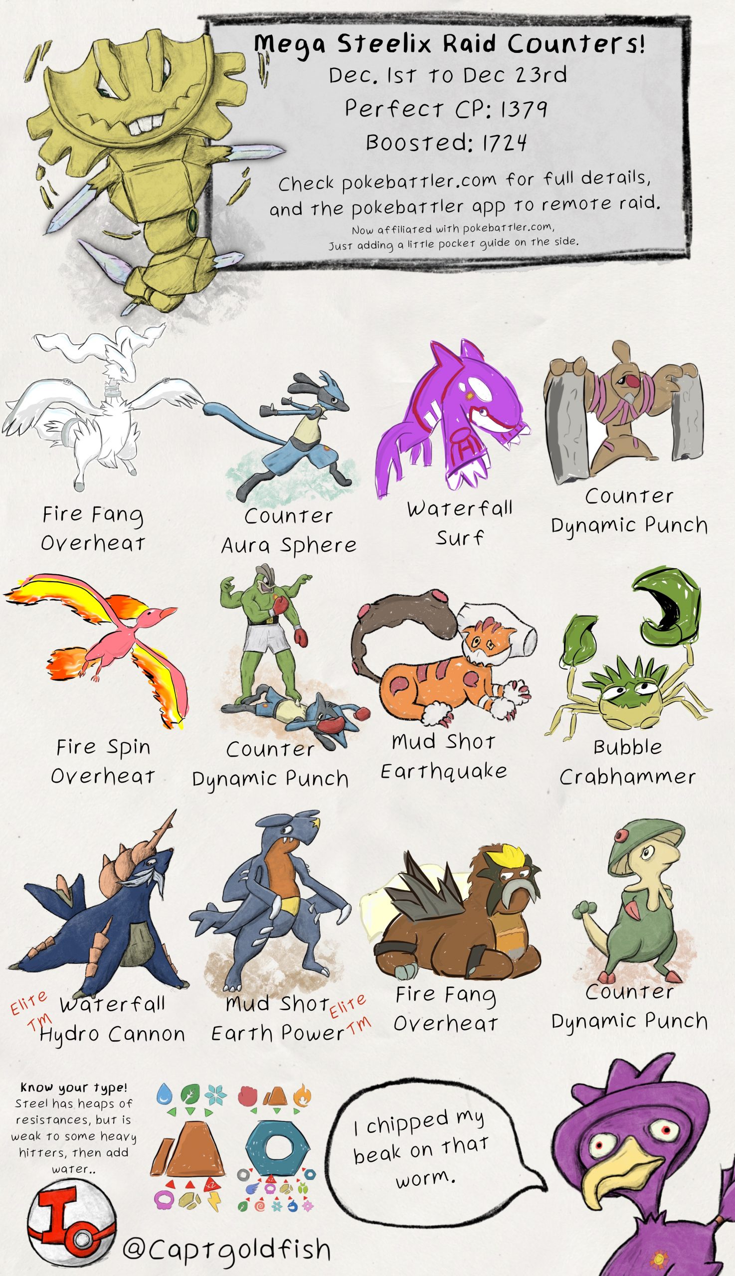 Top counters? Do you have fighters? I’m going to ask that every other raid boss, so get them anyway you can. Some community day mons show up here, so don’t skip those either. Maybe that Crab will finally get put in the game!