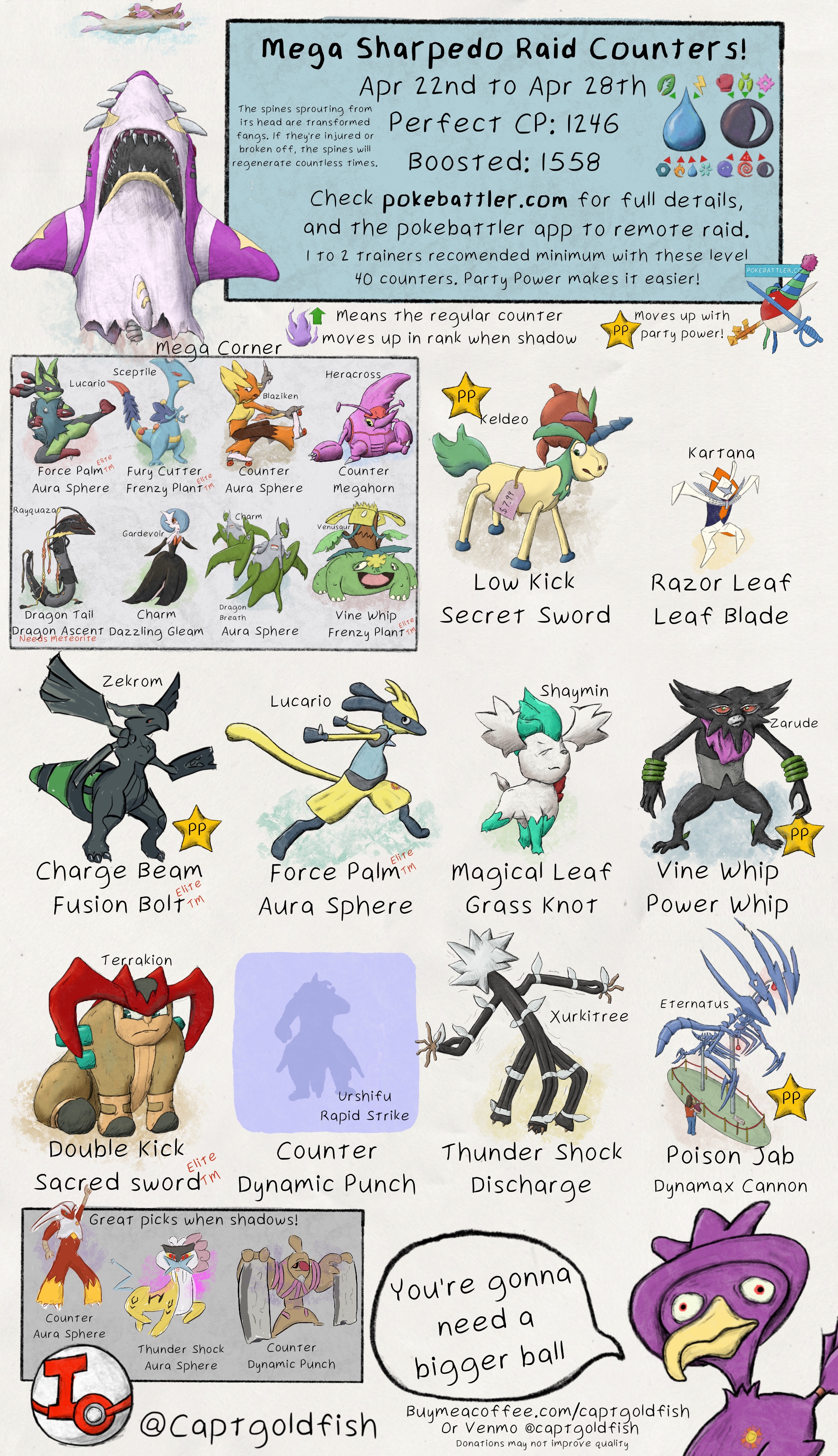 Mega Sharpedo Raid Counters Infographic by CaptGoldfish